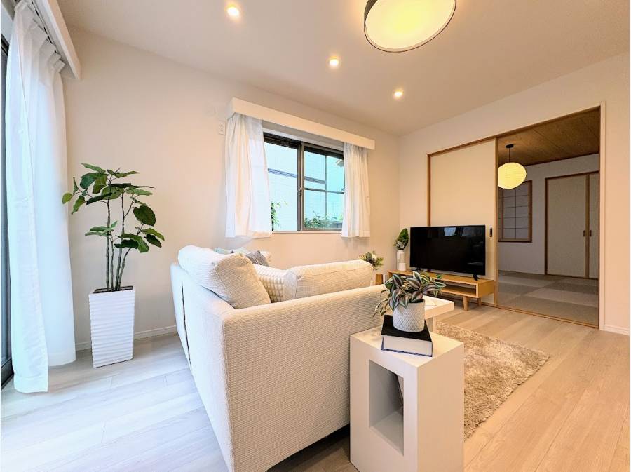 内装はリノベーションによって新しく生まれ変わっており、すぐに快適な新生活を始められる状態です。家族団らんのLDKに加え、心安らぐ和室スペースもあります。