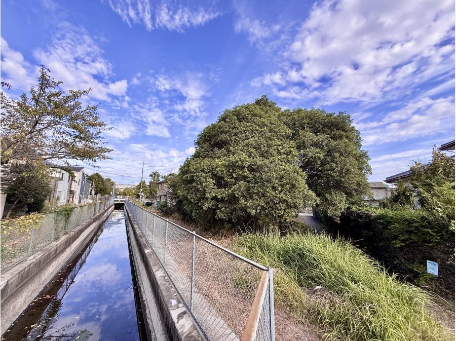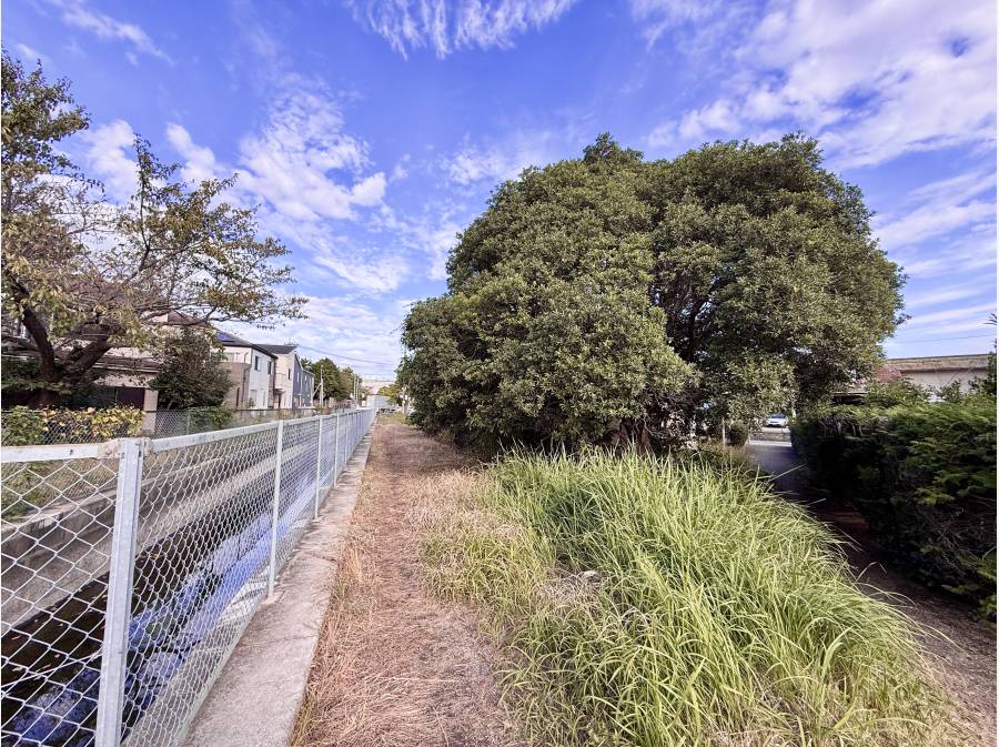 現地の横には、小川が流れておりとても雰囲気が良く、開放感のある敷地になっております。