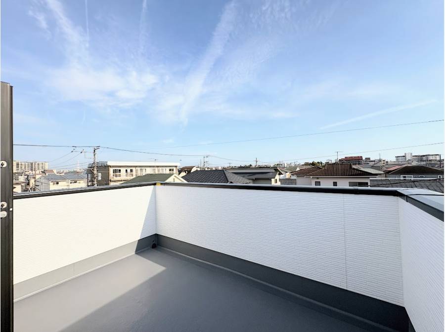 敷地内には広いルーフバルコニーが付いており、ご家族でちょっとしたアウトドアを楽しんだり、周囲の視線を気にせずゆったりとくつろいだりできる、開放的なプライベート空間となっています。
