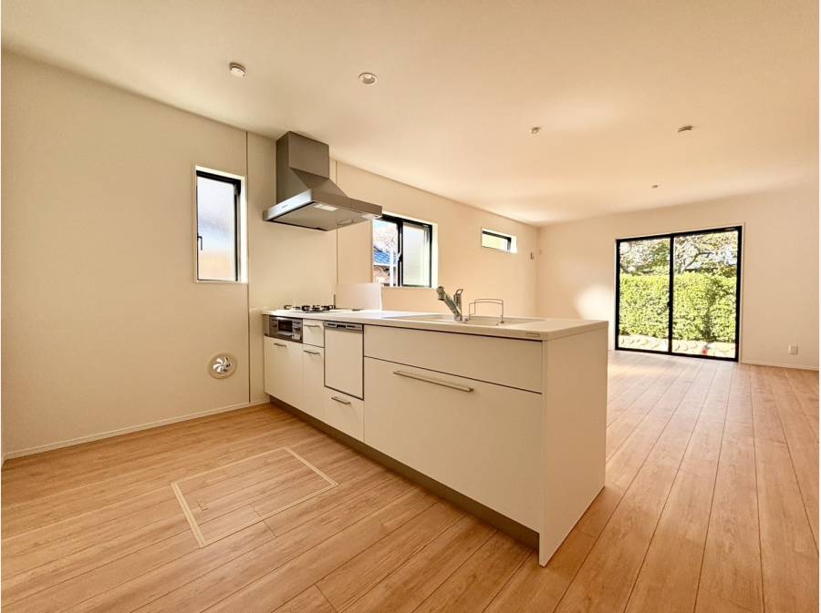 室内は光が取り組みやすい設計で、柔らかな陽射しが部屋全体を明るく演出。シンプルで無駄のない動線設計や、各居室のバランスのいい広さなど、”住み続けて快適”と感じられる工夫も随所に。