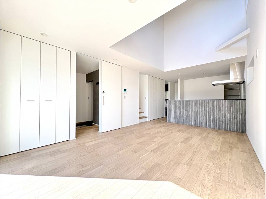 室内は約17.5帖の広々としたLDKを中心に、約5.2帖分もの大胆な吹き抜けを配置。