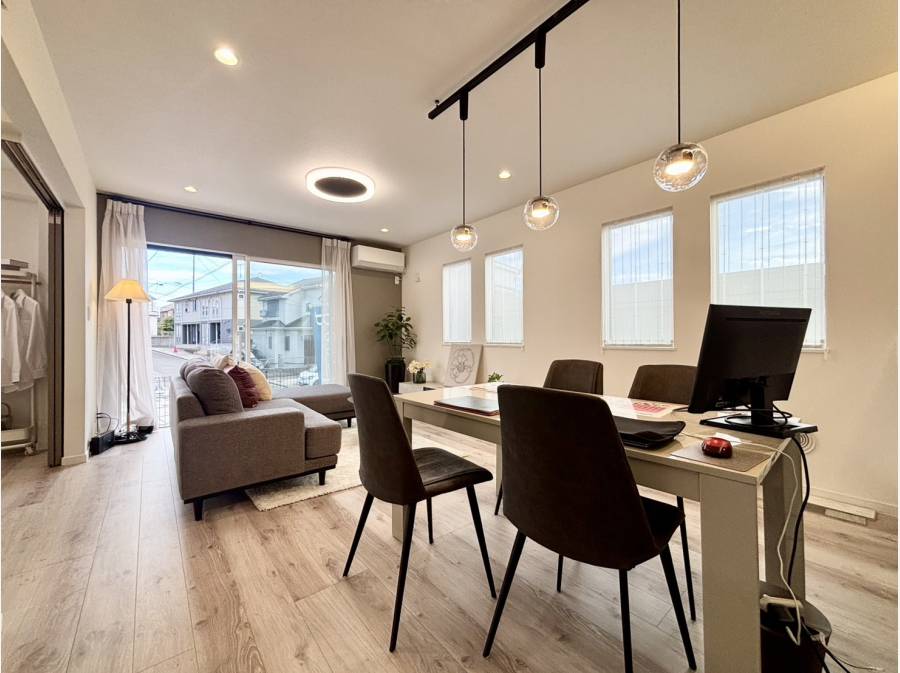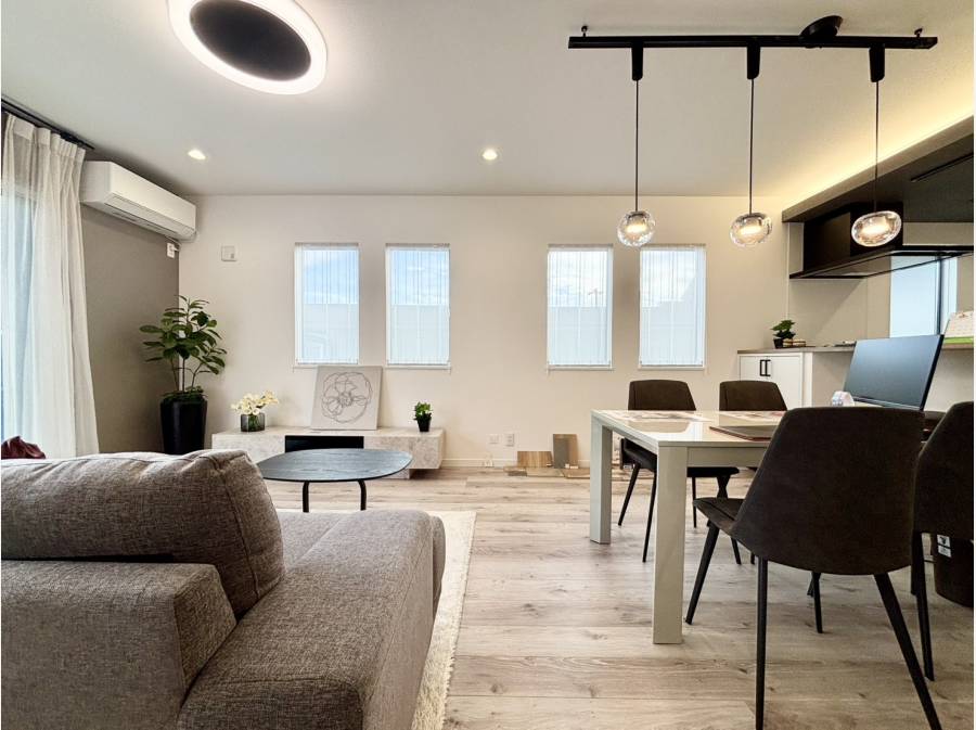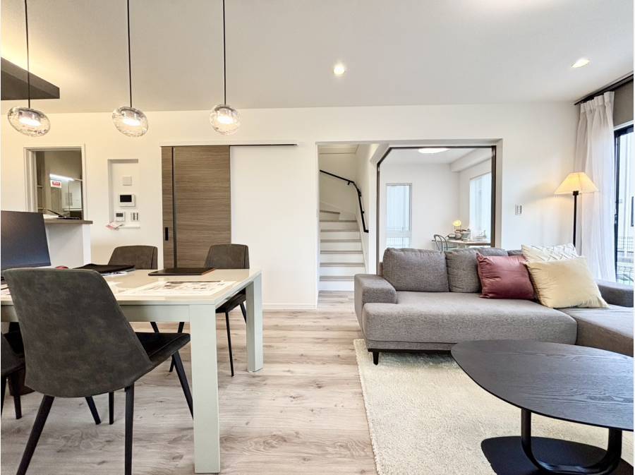 外出先から家電を操作できるloT設備を搭載し、暮らしの利便性も向上しております。開放的なLDKに加え、キッチンからリビング全体を見渡せる安心のレイアウト。