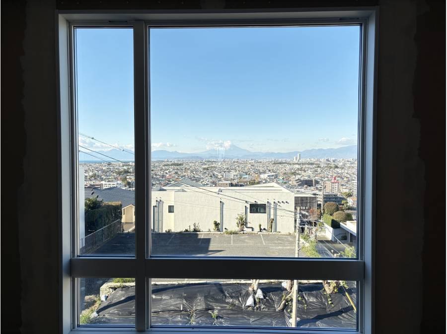 窓の向こうには「富士山」を望むリビング、片瀬山で素敵な邸宅が誕生いたしました。