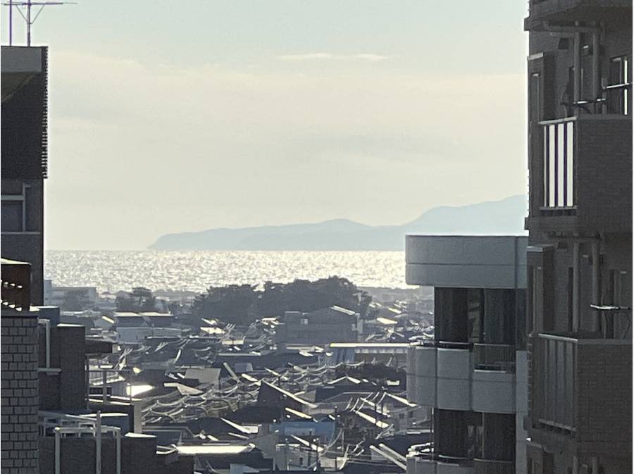 建物の間からにはなりますが、キラキラした海がとてもきれいです