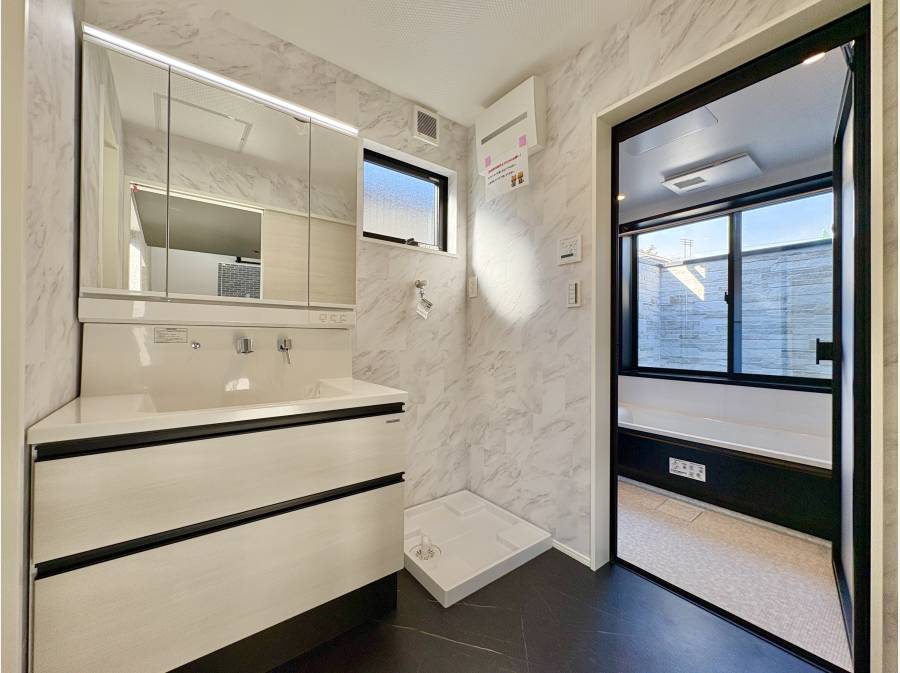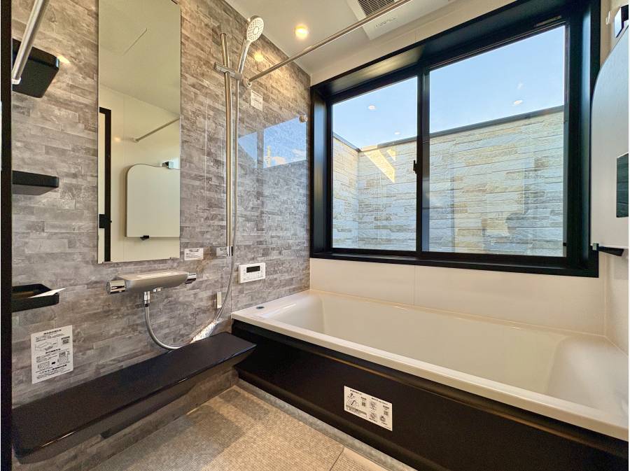 浴室には大きな窓があり、露天風呂のような開放感の中でリラックスできます。