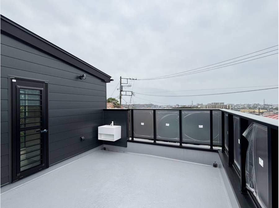 藤沢市柄沢。穏やかな街並みが広がるこの地に、空への開放感を楽しむ新たな住まいが誕生します。一番の魅力は、住まいの最上部に設けられたプライベートなルーフバルコニーです。