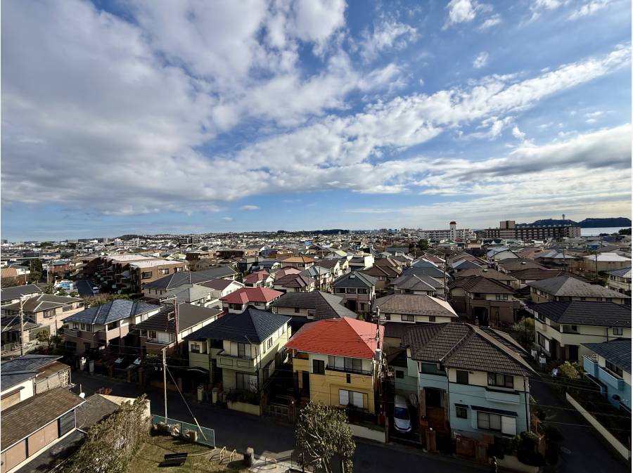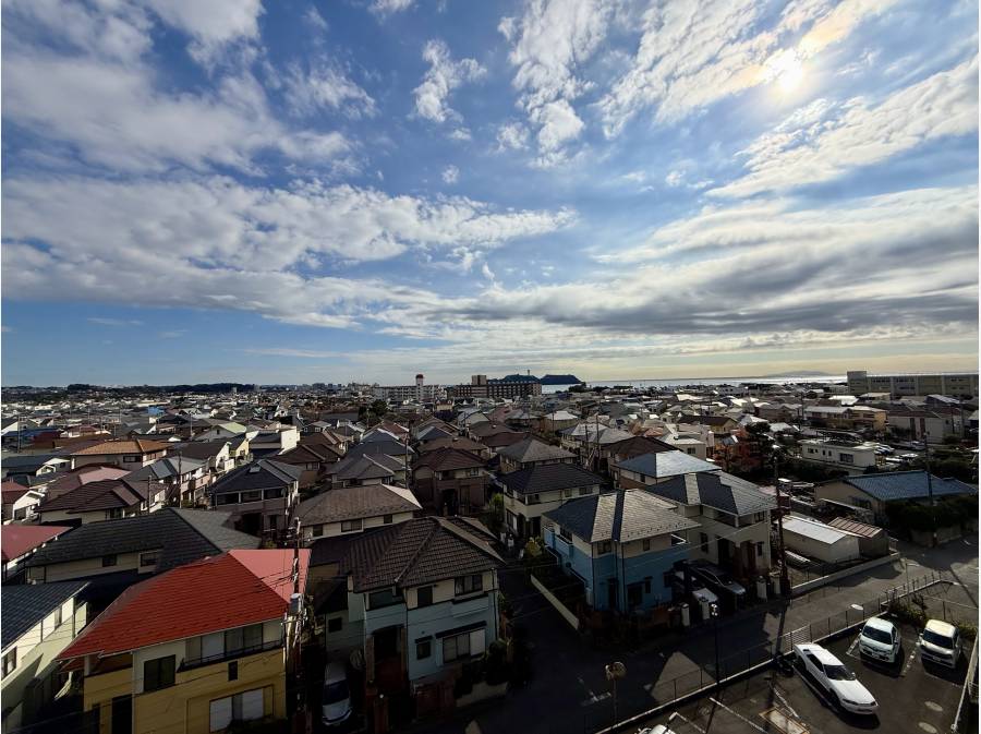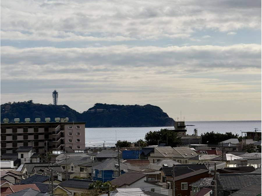 藤沢の街並みや江ノ島、海を眺められる専用駐車場付きの一室。商業施設が周囲にあり便利な立地です。