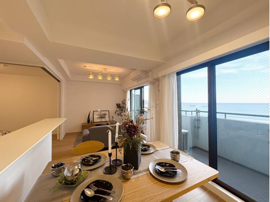 南向きで陽当たりの良くお部屋からも海を望む非日常的な室内空間が広がっています。