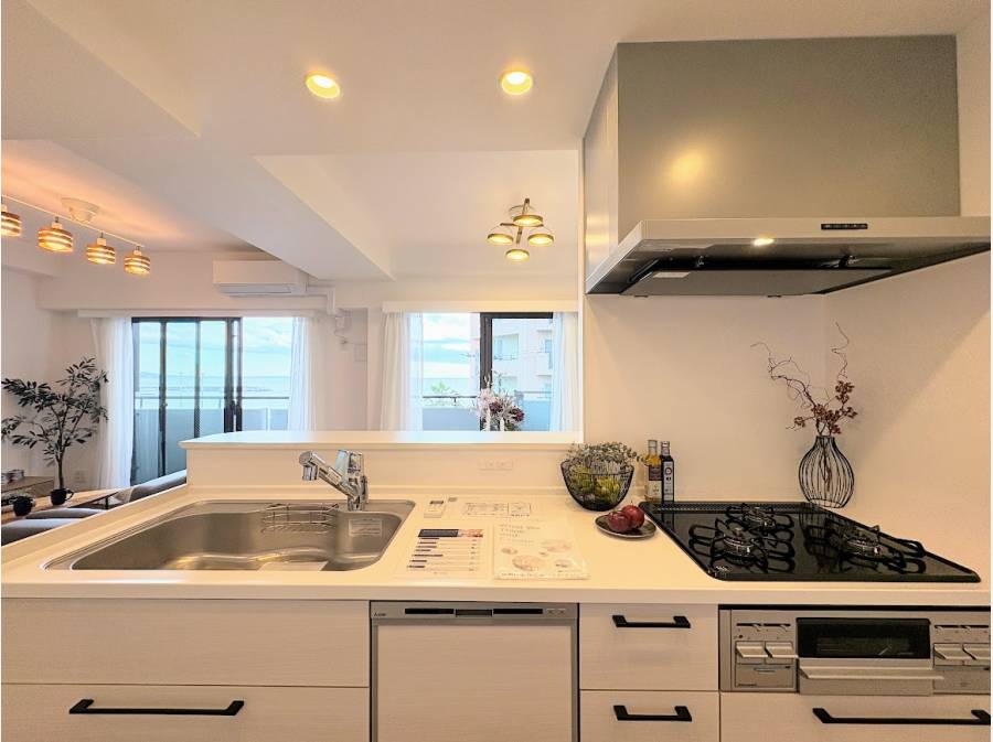 この物件の魅力は、お部屋から堪能できる美しいオーシャンビュー。 バルコニーに出れば、心地よい潮風とともに青い海が目の前に広がります。 リビングでゆったりとくつろいでいるときも、キッチンでお料理をしているときも、大きな窓越しに海を日常の風景として楽しむことができます。