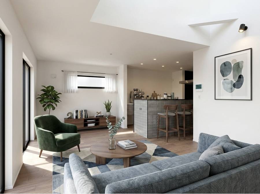 ゆとりある広々としたLDKは、上部に吹き抜けを設けることで広がりと開放感を演出しています。