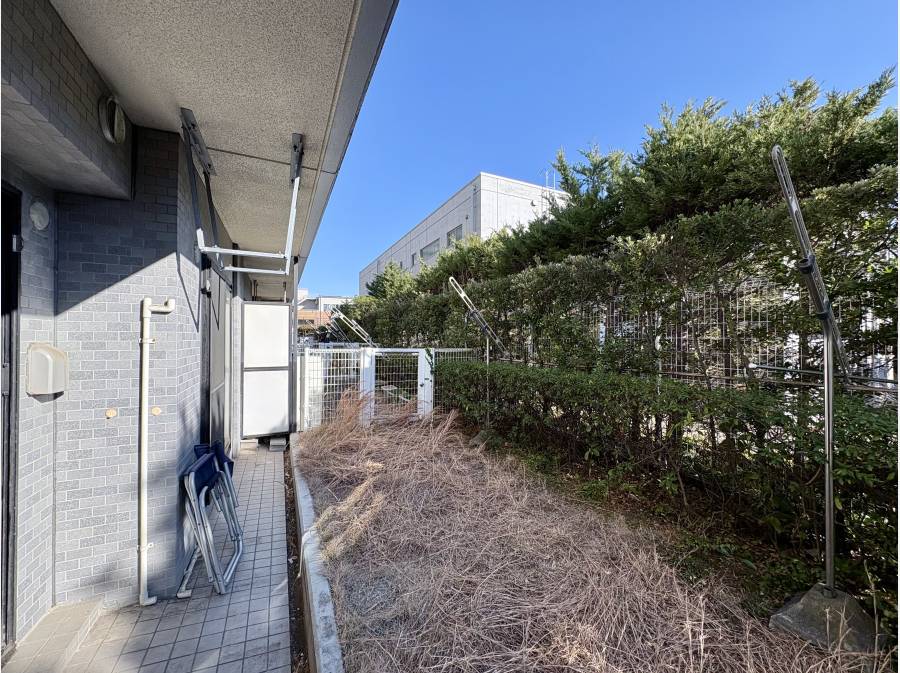 一階ならではの専用テラスがありガーデニングや休日には静かに読書を楽しむのもいいかもしれません。南向きで洗濯物も乾き易いです。
