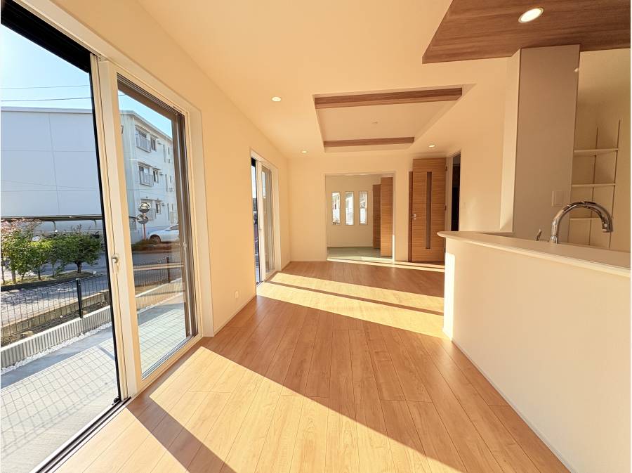 20帖超の広々1階LDKに加え、折り上げ天井が圧倒的な開放感を演出します。