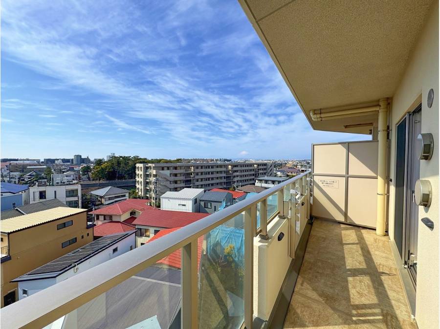 ほぼ正面に江の島、バルコニーから右を見ると富士山が!