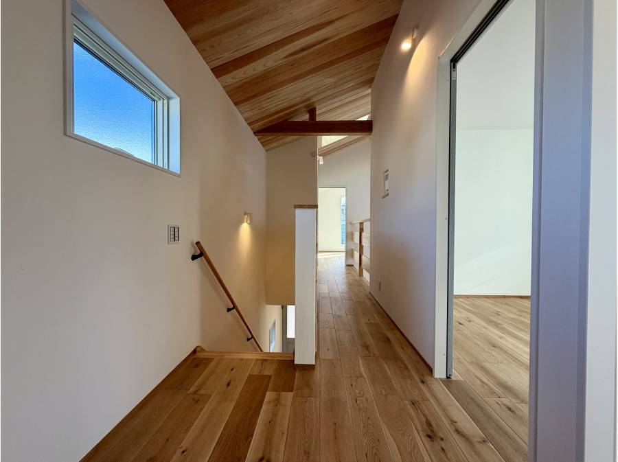 全室、珪藻土塗装仕上げとすることで、調湿・断熱・消臭効果を備え、デザイン性だけでなく住み心地にも配慮した住まいです。