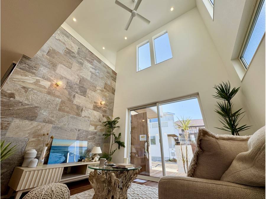 吹き抜けから注ぐ光が家族の時間を優しく包み込みます。