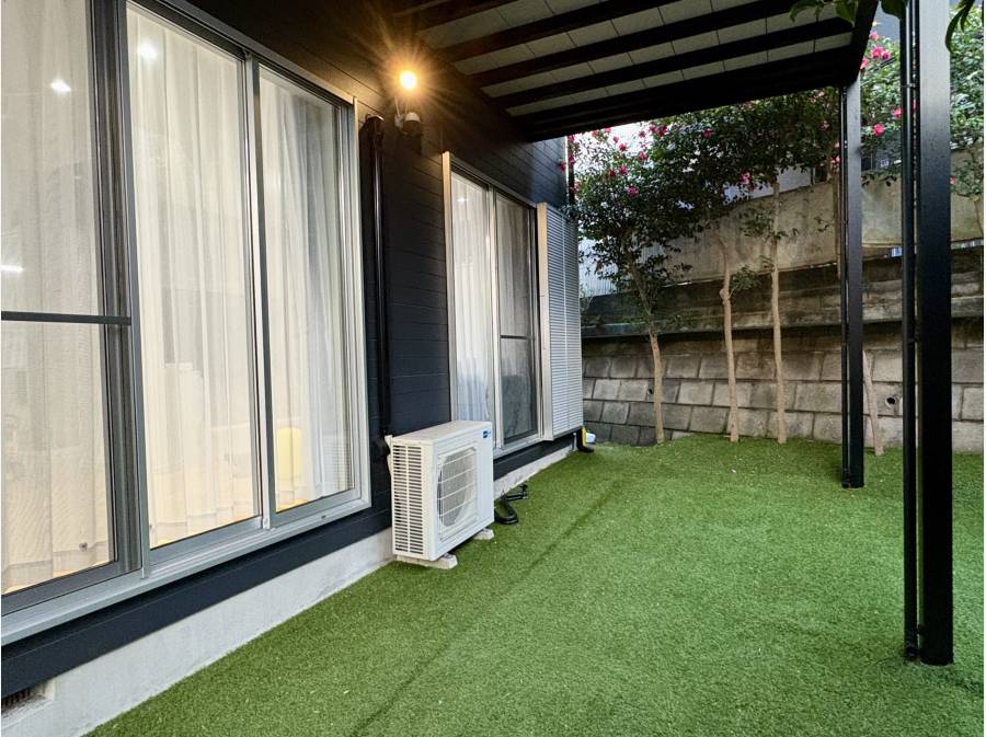 リノベーションで整えられた約20帖のLDKからは、鮮やかな緑のお庭が広がります。