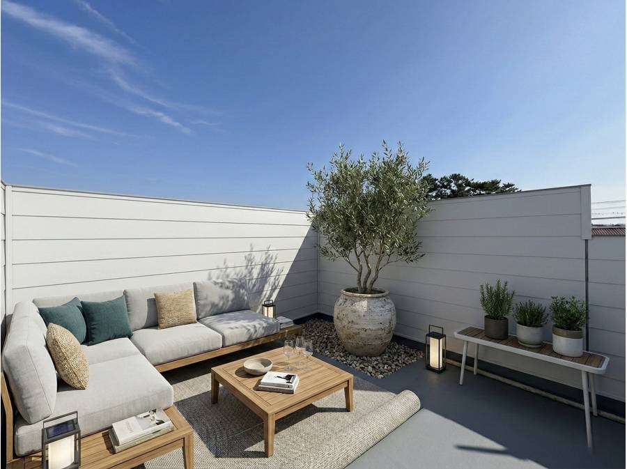 青空と繋がるルーフバルコニー(家具とはイメージCG)
