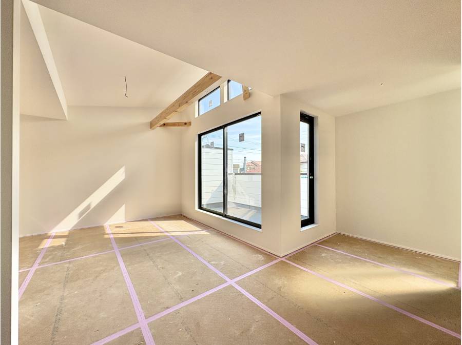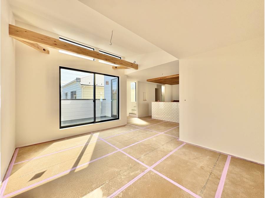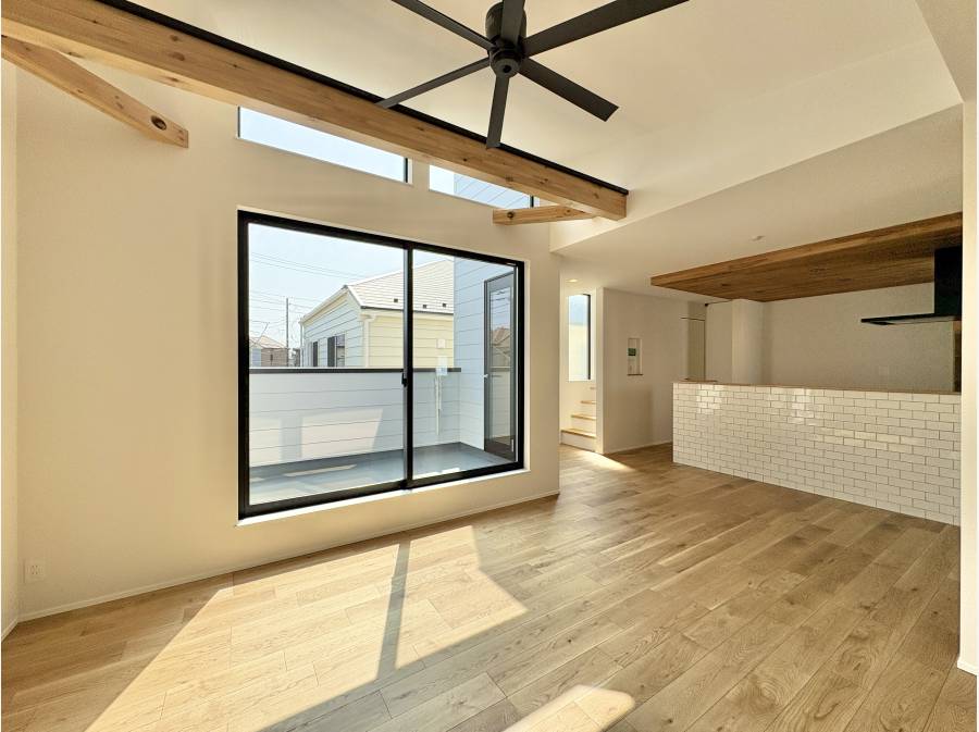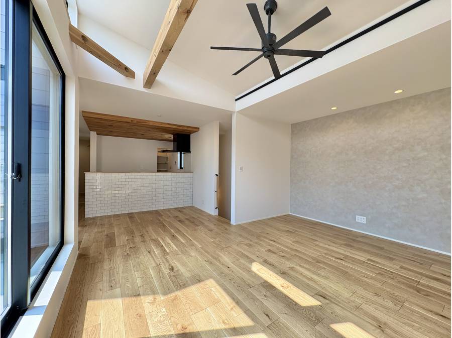 LDKは21帖あり、リビングが勾配天井になっておりますので、とても広い空間になります。