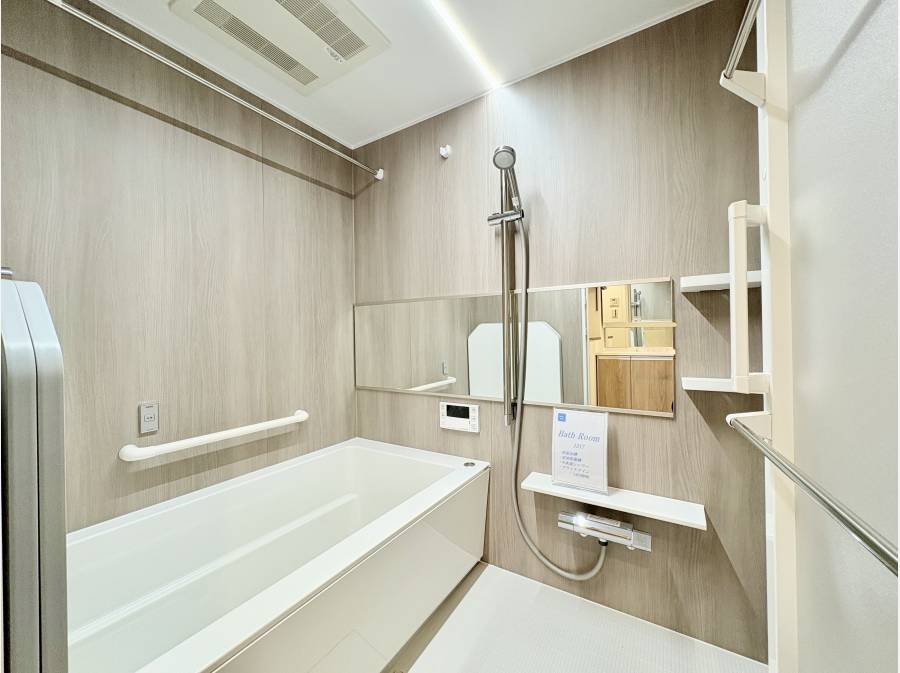 食洗機付きのシステムキッチン。浴室乾燥機の付いたバスルーム