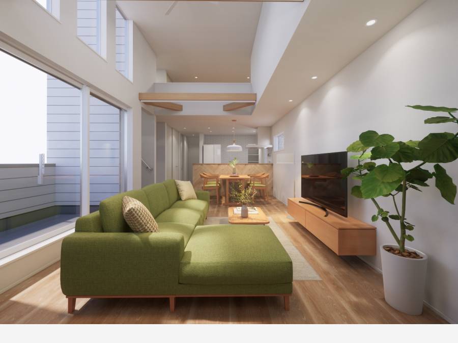 室内は、吹き抜け仕様を採用した開放感あふれる住空間。