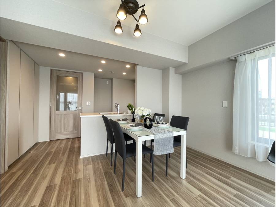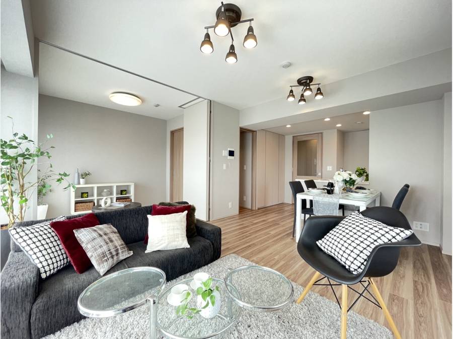 家族団らんの約15.2帖のLDKは、2面バルコニーの為、明るく、開放感に溢れ、床暖部で寒い冬も暖かくお過ごし頂けます