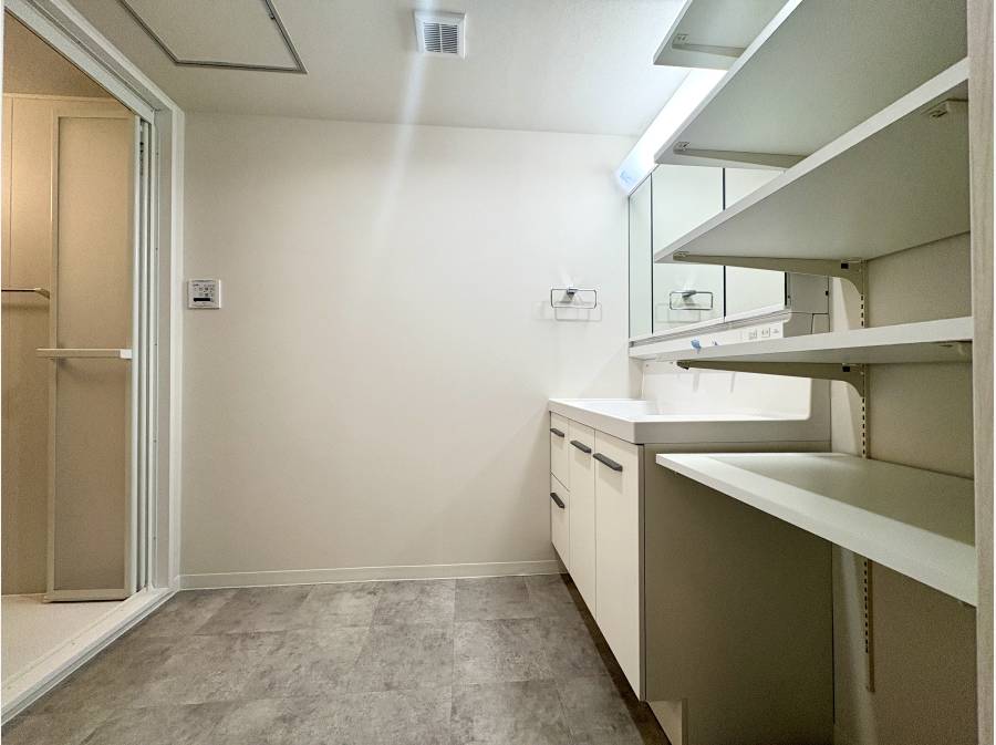 システムキッチンやユニットバス、洗面台、トイレなどの水回りを一新したほか、フローリングの上貼りやクロスの貼替、浴室乾燥機の新規設置など、細部までこだわり抜いた空間に生まれ変わっています。