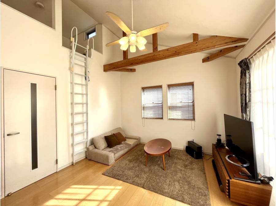 勾配天井が描く、開放的なLDK。