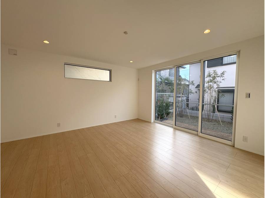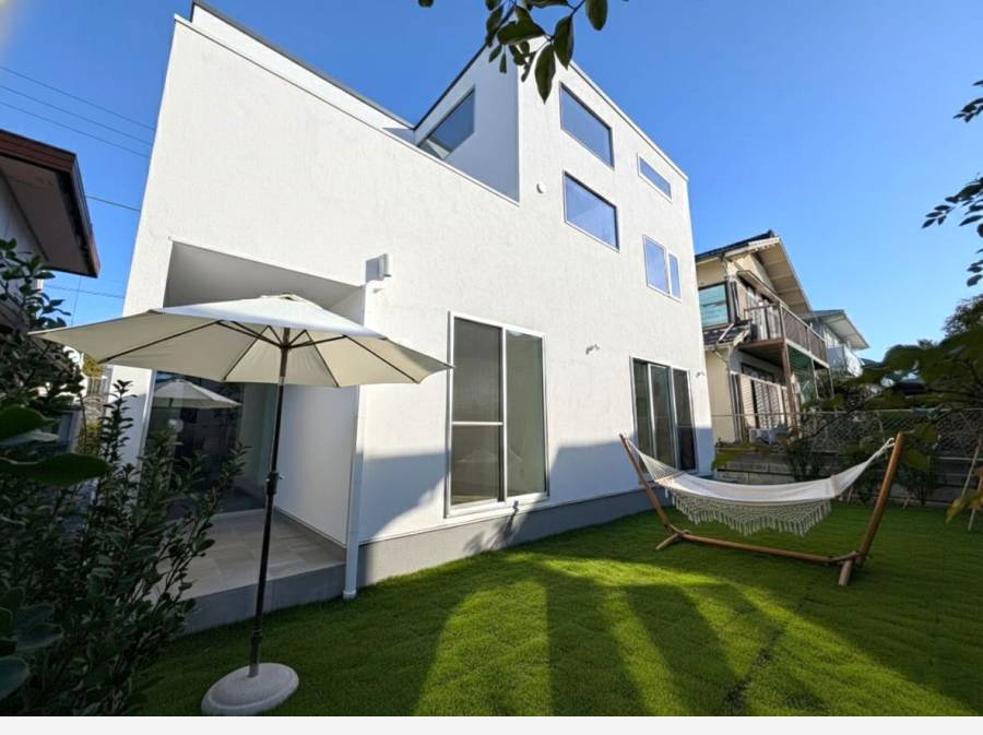 利便性を享受する立地に完成したのは、広いお庭を有する新築戸建。