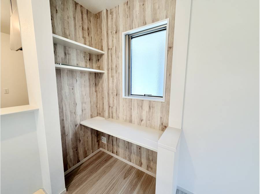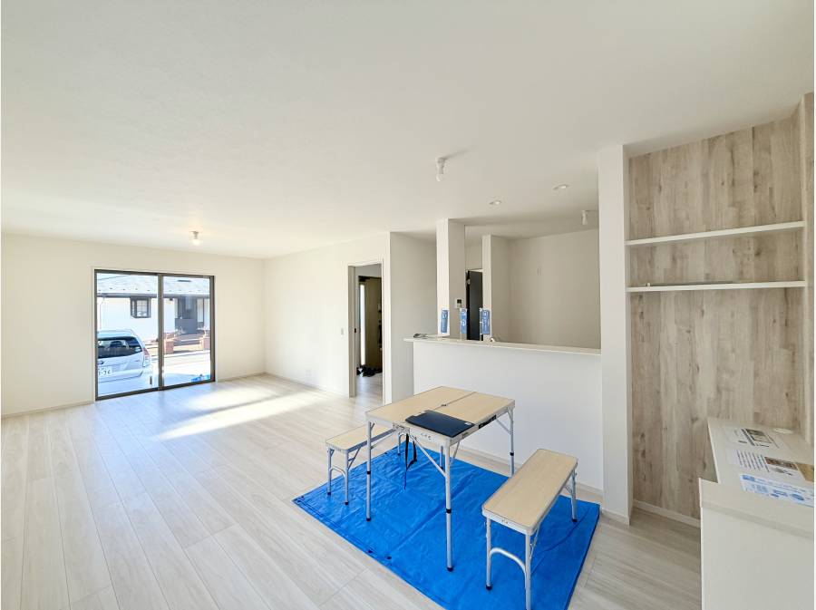 LDKは20帖の広々とした空間。ご家族でゆったりとした時間を過ごせます。ディスクを備え、お子様のリビング学習にいかがでしょうか勉強が捗るLDKです。