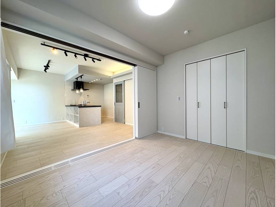 約14.5帖のLDKはフラット対面のシステムキッチンを採用し、料理中も視界が抜ける開放的な空間を実現。