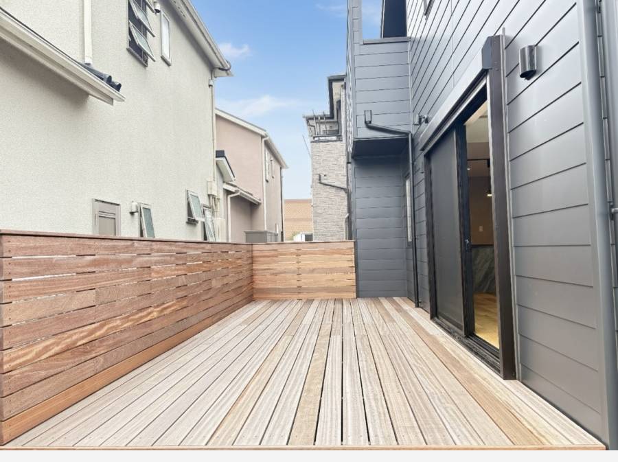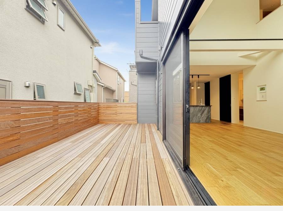また、バルコニーにはウッドデッキが敷かれ、リゾートのような雰囲気に。