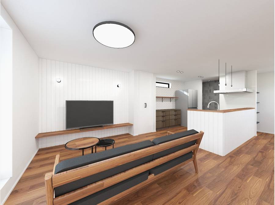 20.4帖もの広々としたLDKは、天然木の風合いとアイアンの質感が調和した、まるで海外のカフェのような空間!