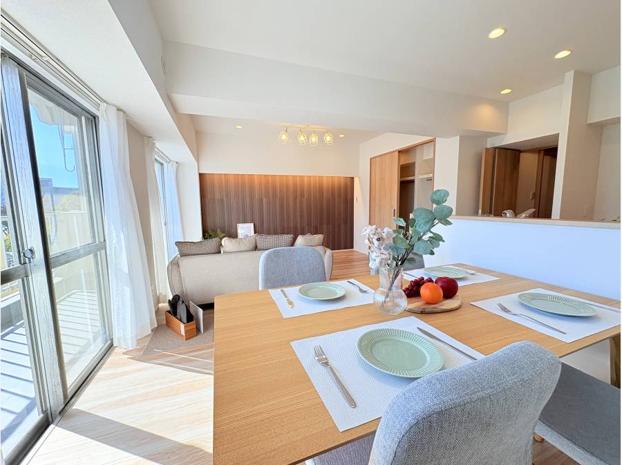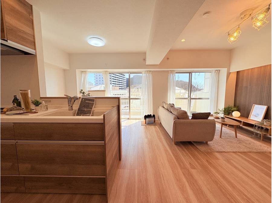 南東向きのため陽当たりが良く、約15.1帖のLDKは明るく開放的な空間が広がります。