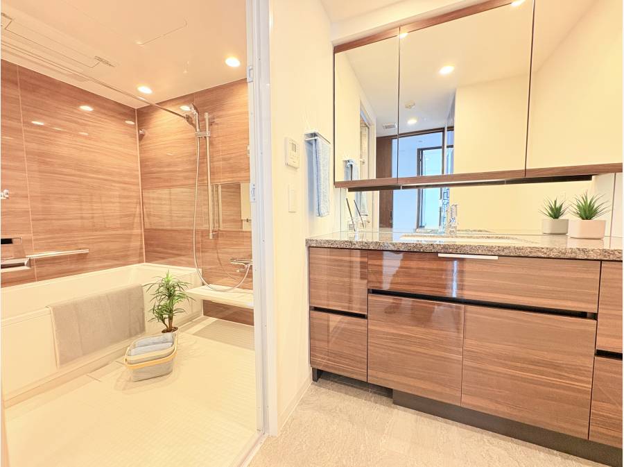 天井の突き板貼りや壁面のエコカラットなど、素材にこだわった上質な空間です。
