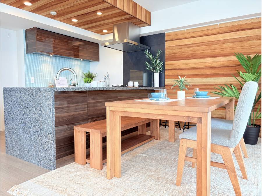 今回は、空間に合わせてコーディネートされたソファーセットやダイニングテーブルなどの家具付きでの販売となります!