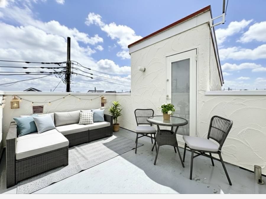 《鵠沼海岸駅徒歩6分》青空に映える白亜の家。吹抜け2LDK+ルーフバルコニー。海と駅が近い鵠沼海岸で、富士山を仰ぐ邸宅