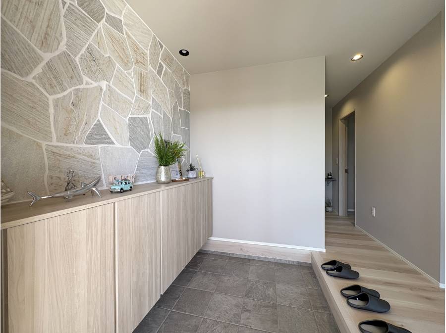 扉を開けると石張りがインパクトのある玄関ホール。