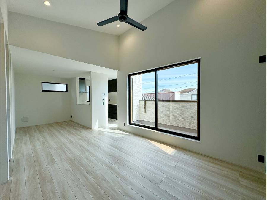 特に2階のリビングダイニングには「勾配天井」を採用し、上へと広がる空間が光と風を呼び込みます。