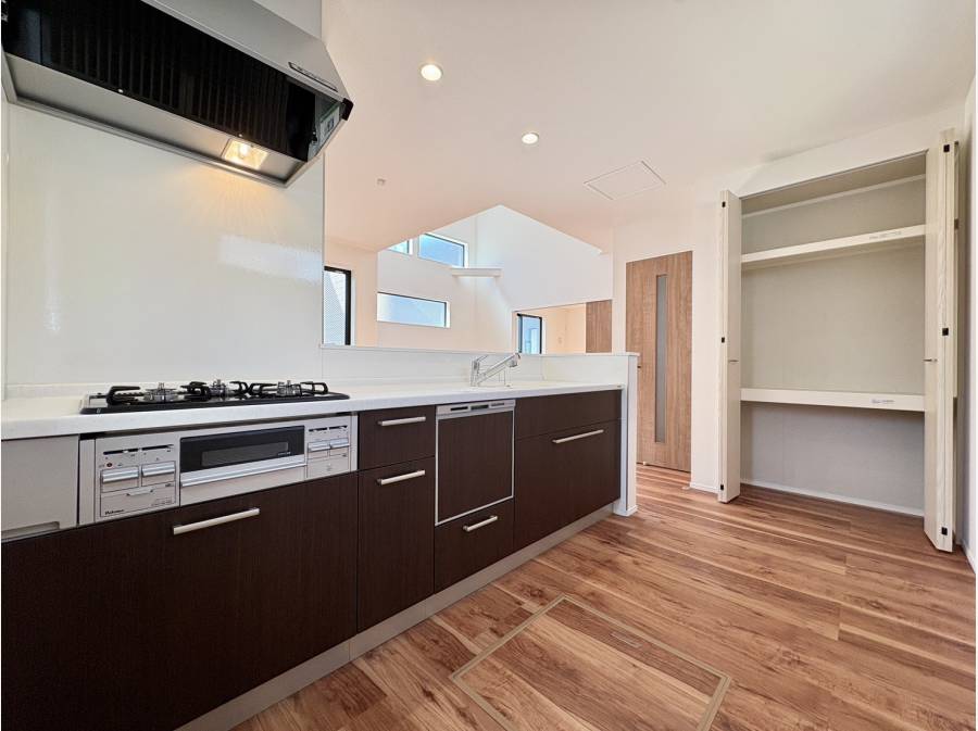 各居室に収納を確保し、キッチン横にはパントリー、さらにウォークインクローゼットも備えた収納力のある住まいです。
