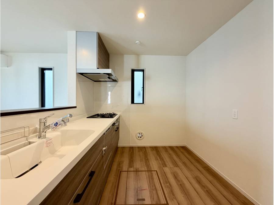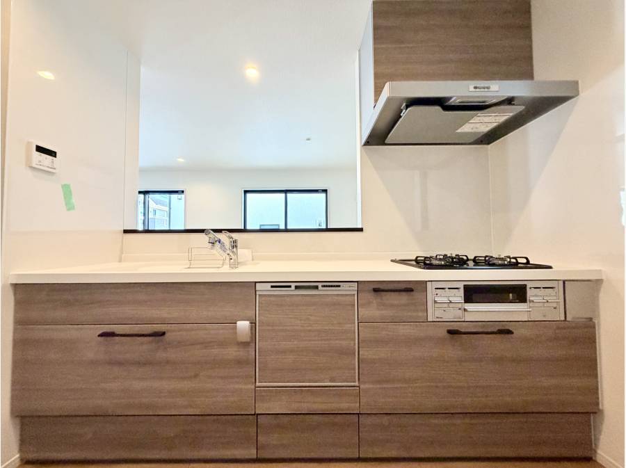 LDKは16帖。対面式システムキッチンは浄水器付きのシャワー水栓。さらに食洗機付きで家事の手間を省いてくれます。