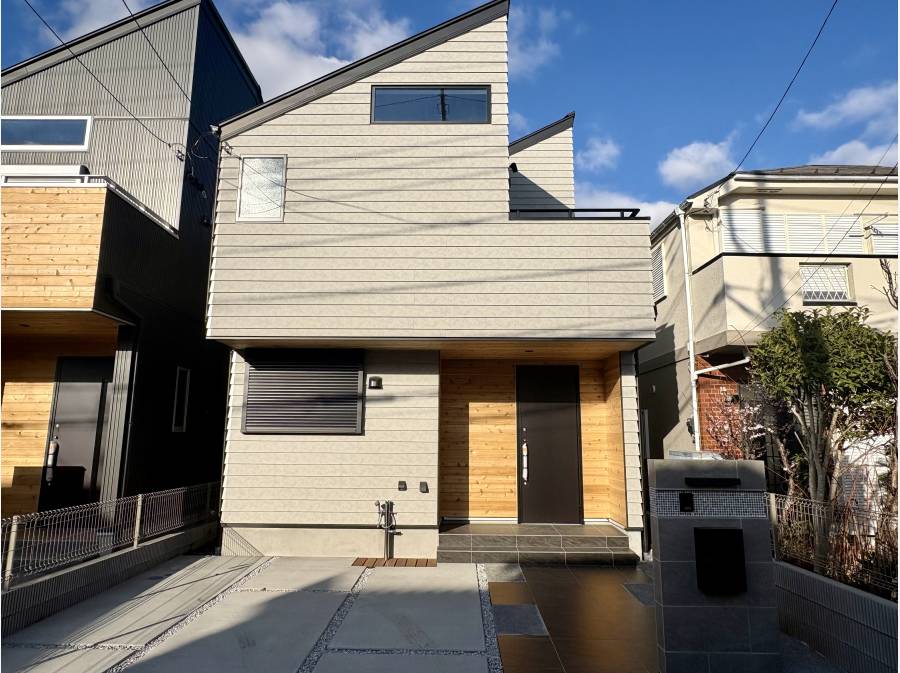 第一種低層住居専用地域の静穏な街並みに、素材選びから意匠を凝らした新築戸建が登場しました。