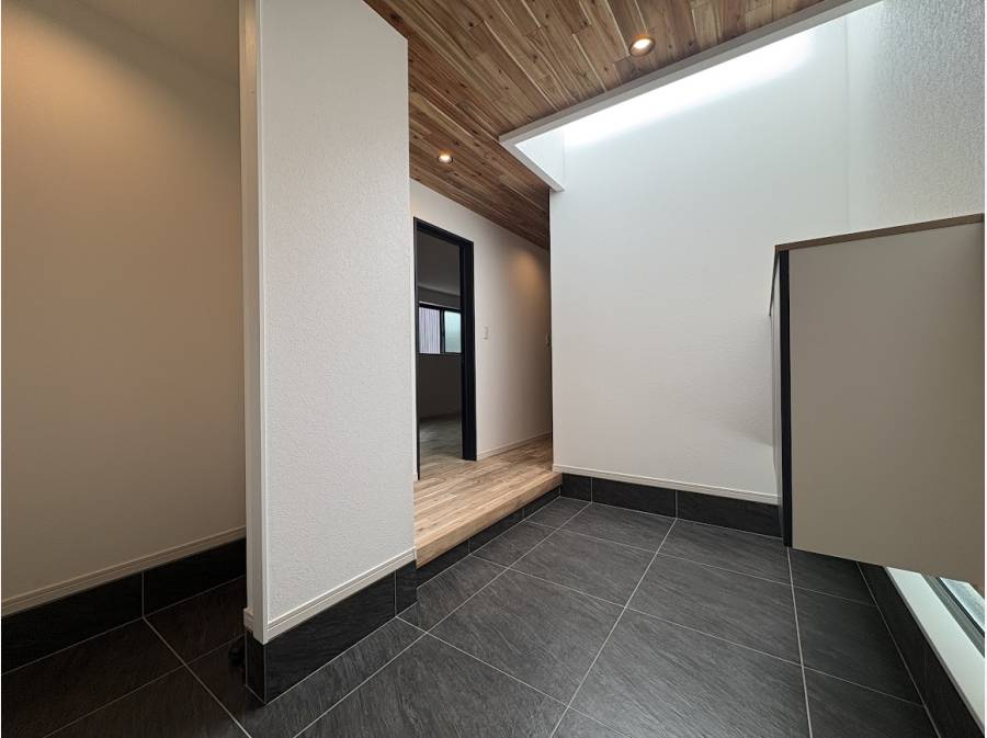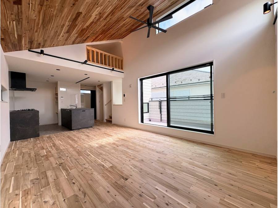 一歩足を踏み入れると、アカシアの無垢材を使用した床と天井が温かく迎えてくれます。天然木ならではの質感と香りに包まれる暮らしを想像してみてください。