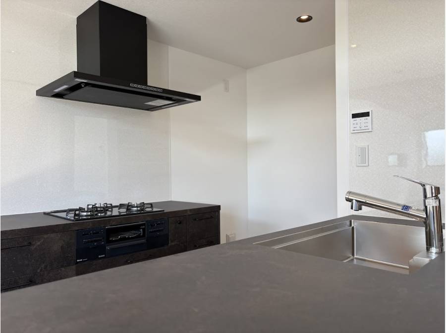 キッチンはグラフテクト社のデュエを採用。広々とした作業スペースと豊富な収納で、料理の時間が一段と楽しくなります。