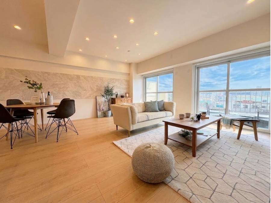 21帖超のゆとりあるLDKは、海辺の開放感をそのまま室内に取り込んだような、贅沢な空間に仕上がっています。
