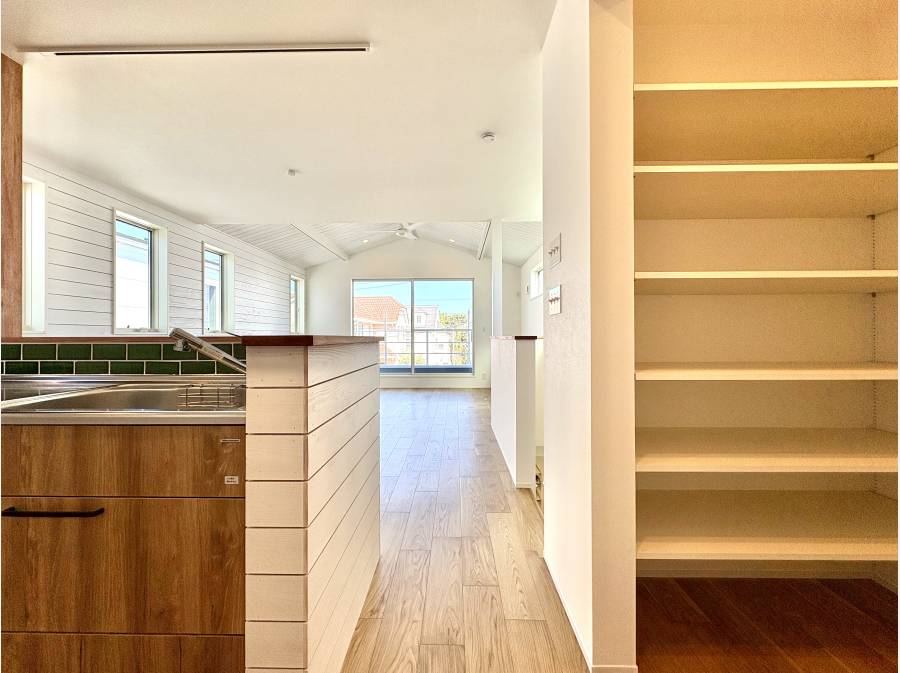 室内には、テレワークや学習に便利なワークスペースや、キッチン周りをスッキリさせるパントリーを完備。