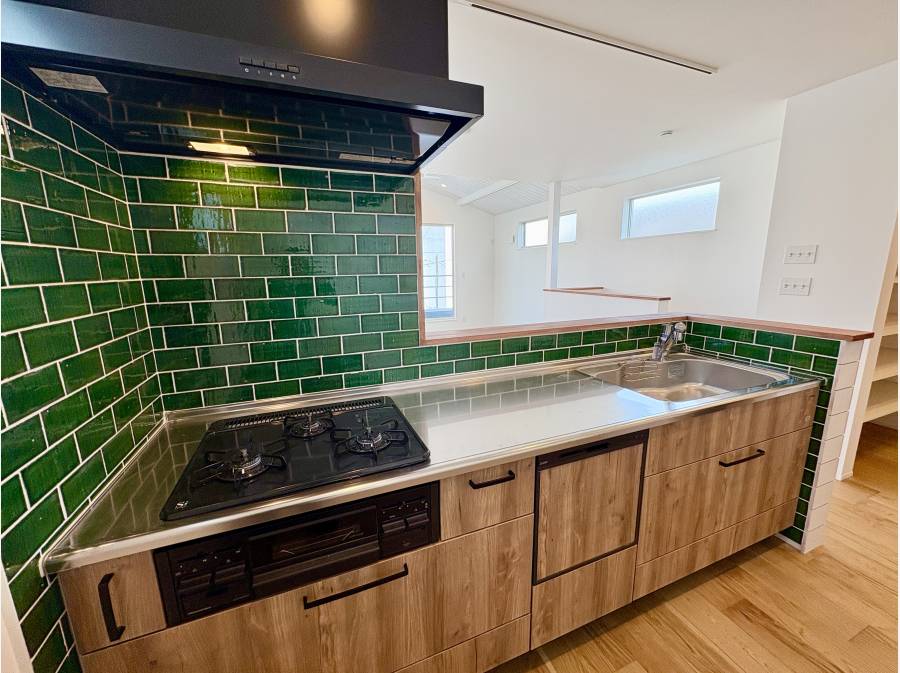 対面キッチンには空間を引き立てる「下がり天井」を採用し、お洒落なカフェのような居心地の良い雰囲気を演出しています。