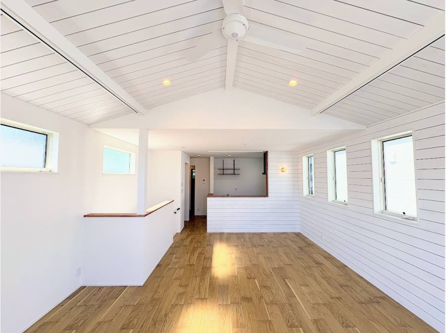 主役は、勾配天井が広がりを見せる約21帖のLDK。