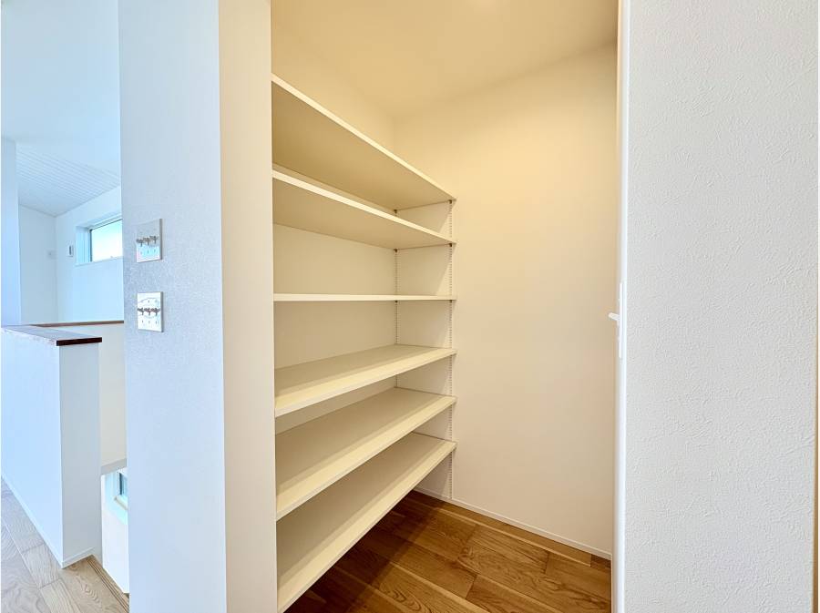 キッチンの隣にはパントリーを設け、奥様や料理をする方に嬉しい設備も見どころです。