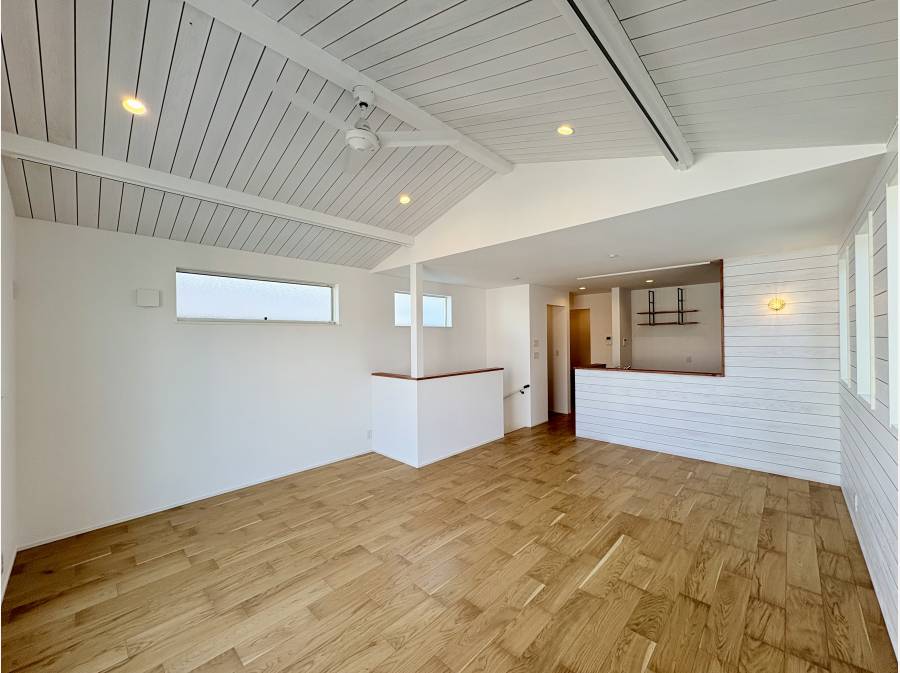 21帖あるLDKは、勾配天井でご家族でまったりと寛げる空間が広がります。