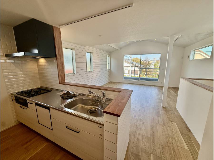 2階には、サーフショップのような温もり漂う21帖超のLDKが広がります。